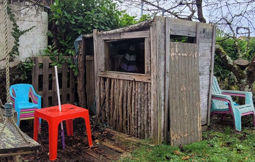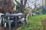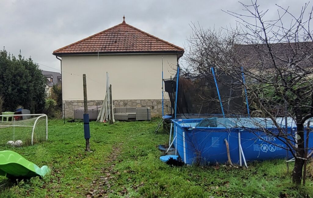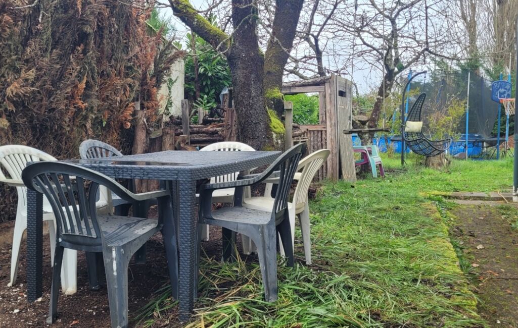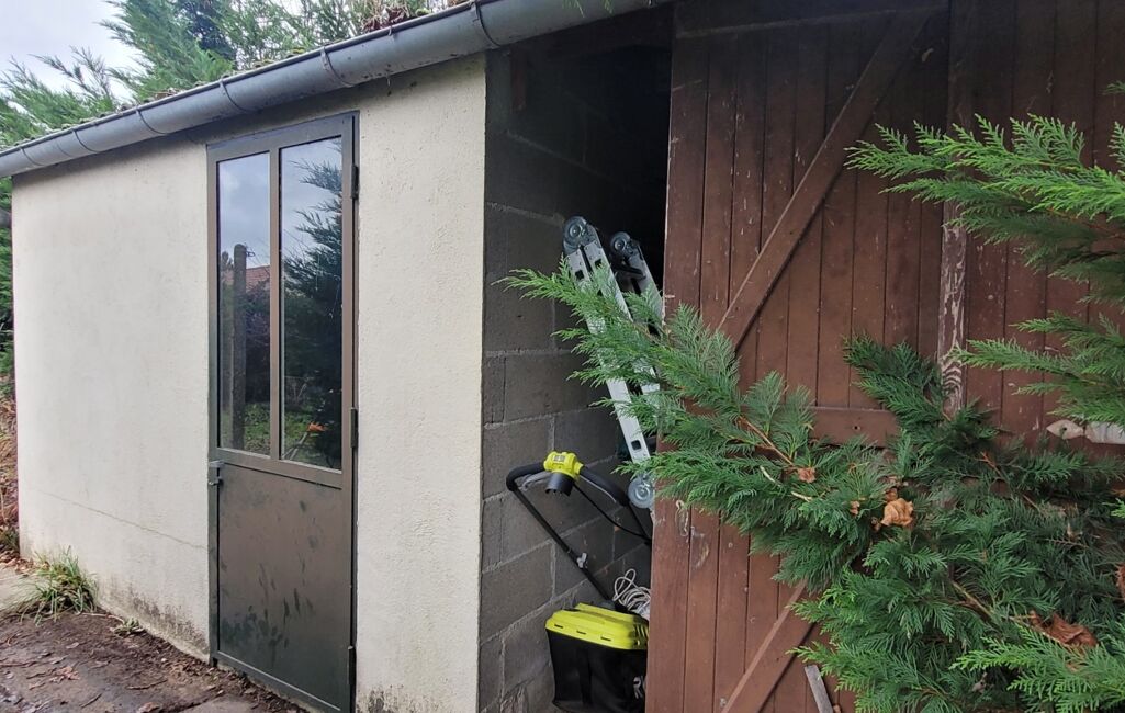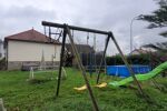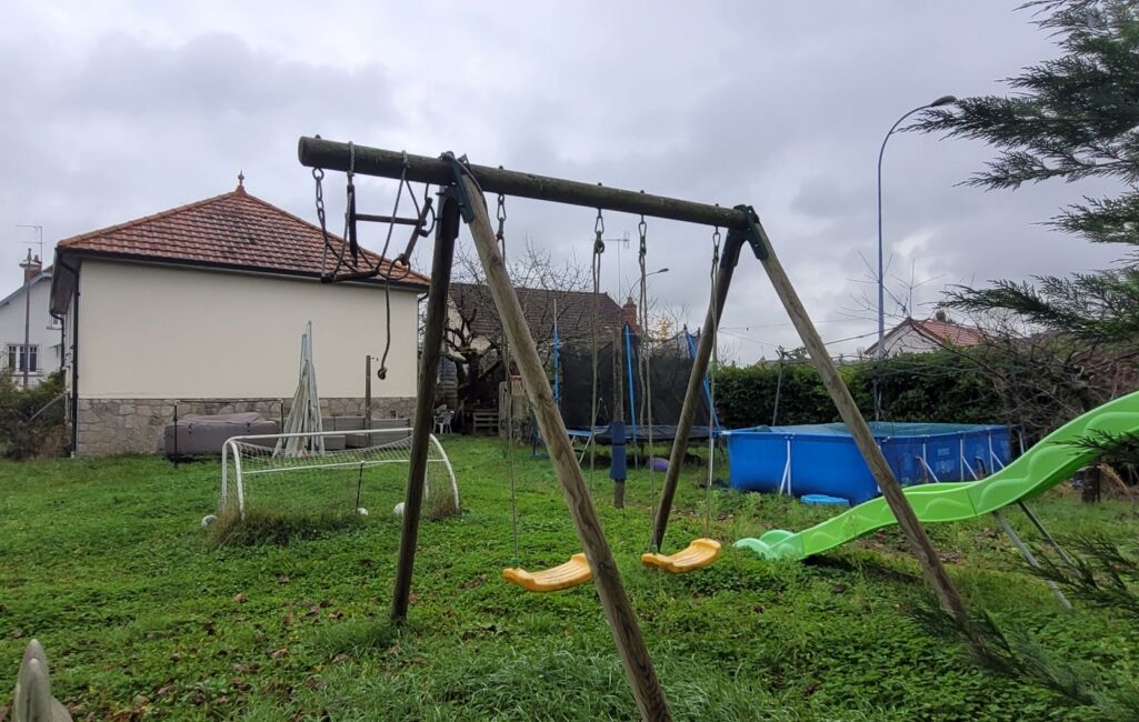 Coté terrain l'espace nécessaire pour toutes les activités extérieures est présent. La piscine tubulaire et le trampoline feront la joie des enfants. Un abri en dur au fond du jardin permettra le rangement du mobilier estival.