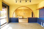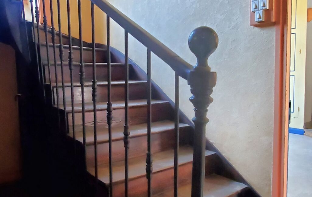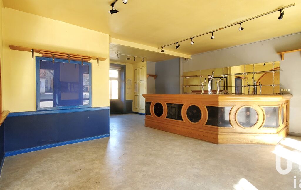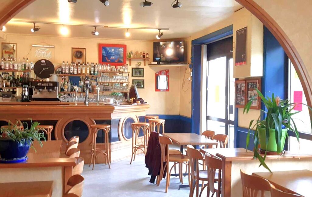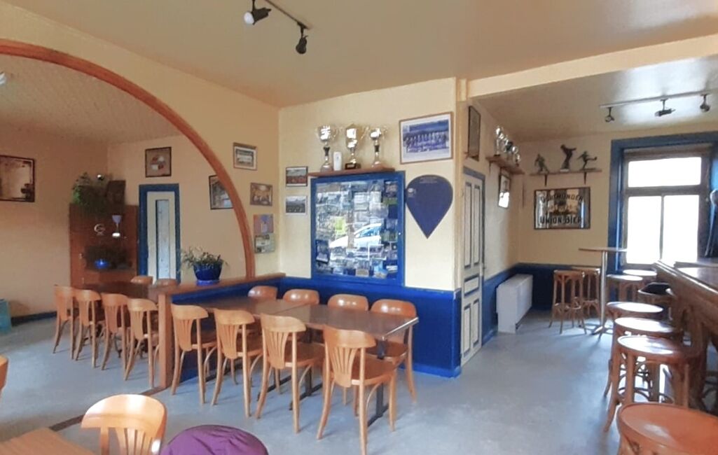 Le rez-de-chaussée était anciennement un commerce et se compose d'un séjour de 17,7m² ouvert sur une salle spacieuse de 39,8m² avec un bar en bois, d'une cuisine séparée simple de 11,8m², d'un WC séparé avec lave-main à l'extérieur.