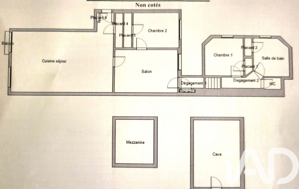 L'appartement se compose d'une cuisine ouverte sur le séjour, d'un espace salon avec mezzanine apportant du cachet, de deux chambres, d'une salle d'eau et d'un WC séparé.