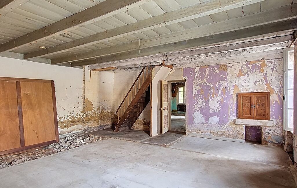 L’ensemble comprend une maison principale avec plus de 135 m² à aménager, offrant de très beaux volumes, une véranda lumineuse côté jardin, des pièces à fort cachet avec murs en pierre, poutres apparentes, et une cheminée ancienne. À cela s’ajoute une seconde bâtisse, qui peut devenir une habitation indépendante d’environ 100 m², avec un étage à exploiter.