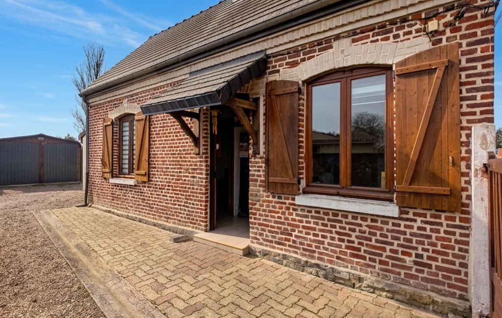 iad France - Cindy Denimal vous propose: Cindy Denimal vous propose en exclusivité, à quelques minutes de Nesle, dans le village de Potte, cette charmante petite maison en briques avec jardin et dépendances, idéale pour un premier achat, un investissement ou un pied-à-terre.