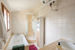 À l’arrière, la maison dispose d’un WC indépendant, d’un espace de rangement ainsi que d’une salle de bain avec baignoire et douche.