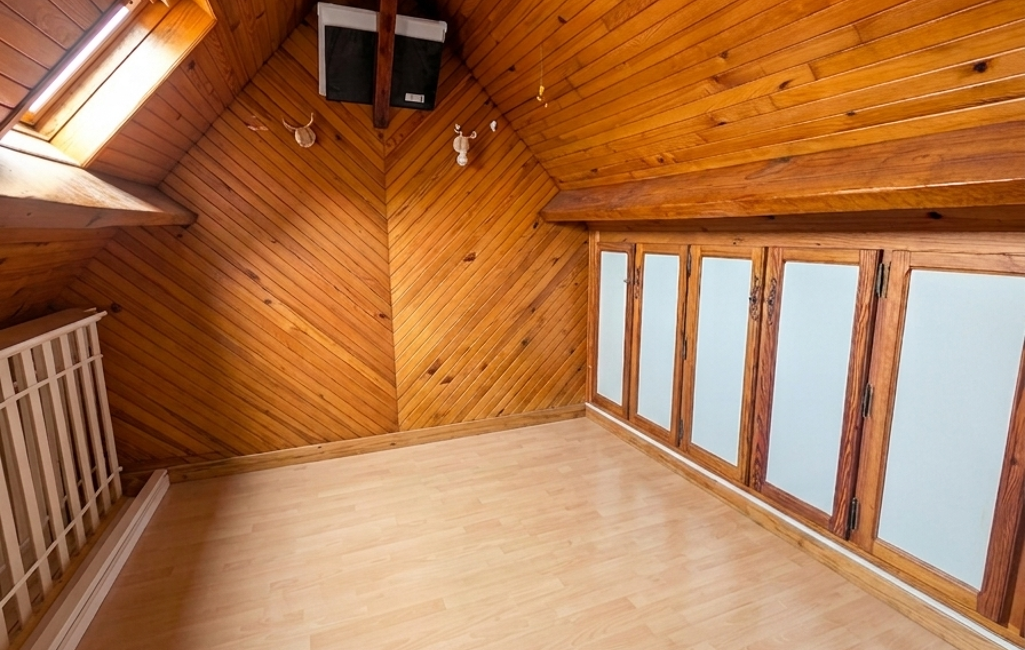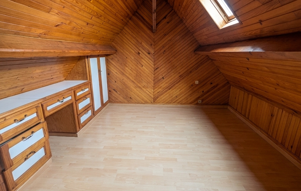 À l’étage, un petit palier dessert deux espaces mansardés, parfaits pour un coin nuit, un bureau ou une chambre d’appoint selon vos besoins.