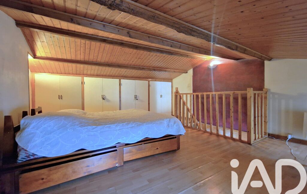 À l’étage, une grande chambre mansardée avec de grands placards.