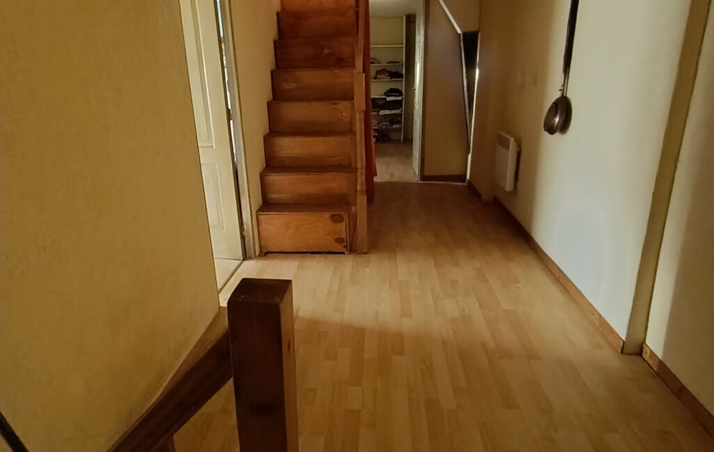 À l’étage, un vaste hall dessert une chambre lumineuse exposée plein sud, offrant une belle clarté tout au long de la journée, ainsi qu’une salle de bain fonctionnelle. L’ensemble crée un espace nuit agréable, calme et bien agencé.