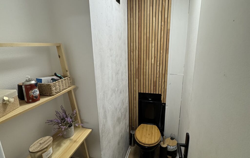 Un dégagement dessert un WC séparé, une salle d’eau moderne, ainsi que deux chambres confortables, idéales pour une famille, un couple ou un télétravail organisé.