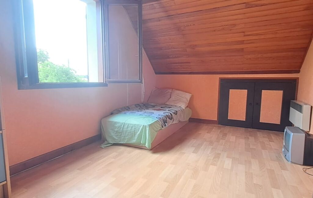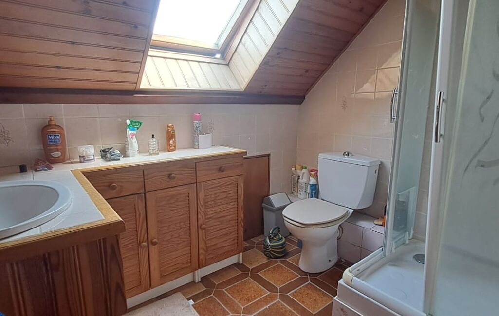 Un palier dessert deux chambres spacieuses, dotées de rangements sous les rampants, ainsi qu’une salle d’eau avec WC.