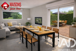 Cette maison de plain-pied propose une belle pièce de vie lumineuse avec cuisine ouverte, tournée vers le jardin, parfaite pour les moments de convivialité.