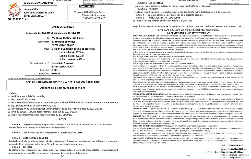 • Superficie terrain : 3070 m²