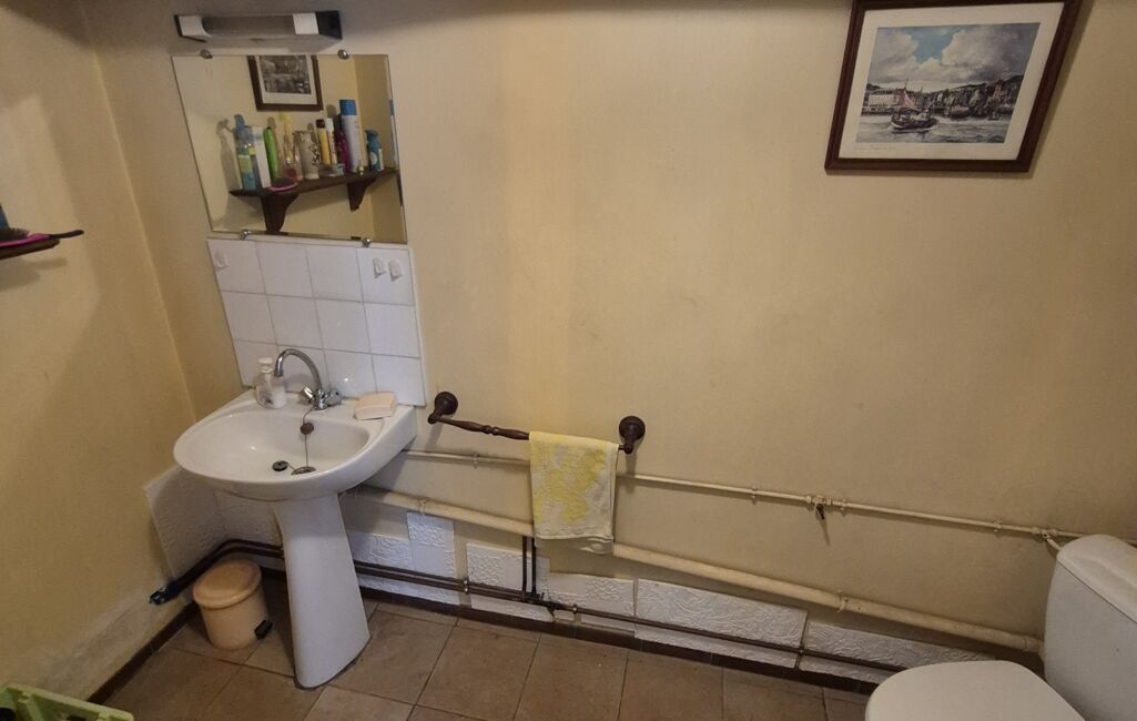 Cette maison d’environ 50 m² est à rénover entièrement. Elle se compose de deux petites chambres, d’une pièce en enfilade pouvant faire office de troisième chambre, d’un espace prévu pour une cuisine, ainsi que d’une pièce d’eau avec lavabo et WC.