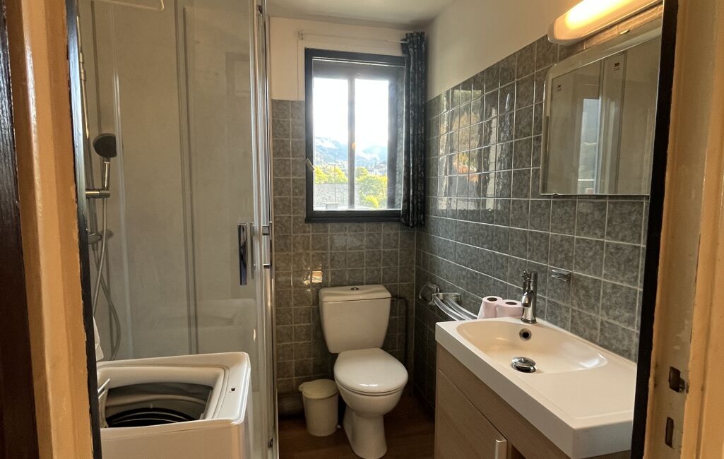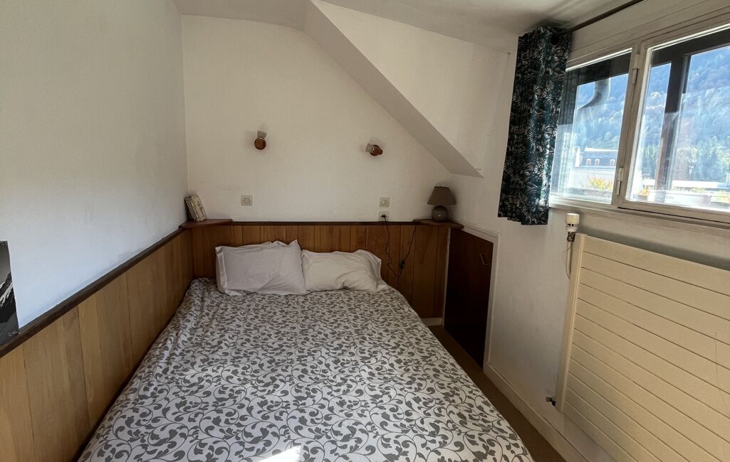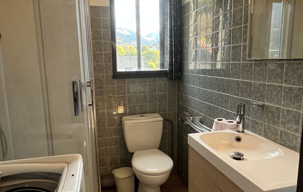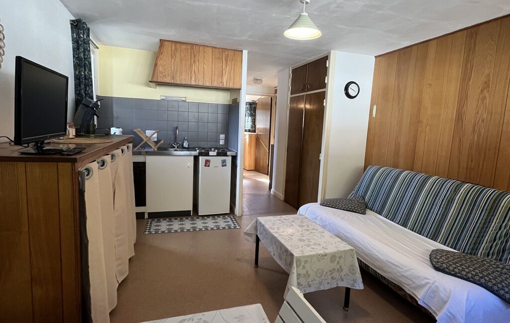 Cet appartement traversant lumineux se compose d'un séjour cuisine, d'une chambre confortable et d'une salle d'eau moderne refaite à neuf. La décoration intérieure est sobre offrant un espace de vie agréable et fonctionnel. Les doubles ouvrants offrent une vue agréable sur les montagnes environnantes.