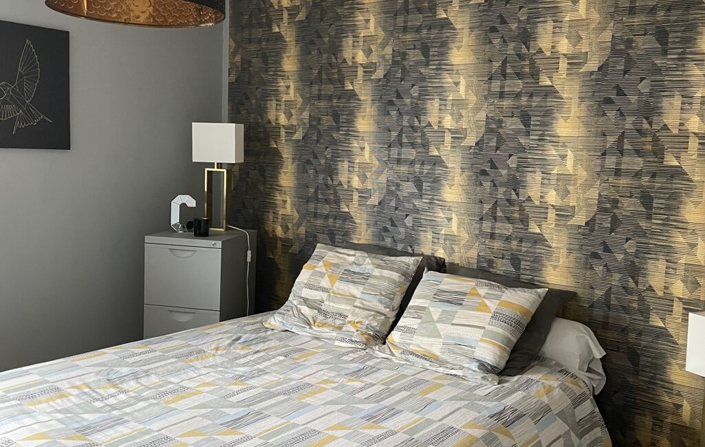 Côté nuit, une chambre de 12 m², la salle de bain de 5 m² environ offre un espace de détente avec sa baignoire. Les WC sont indépendants, offrant un confort supplémentaire.