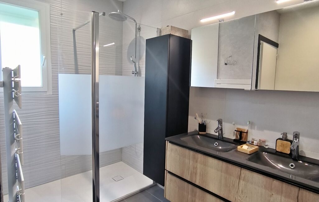 Au sous sol, une troisième chambre avec point eau et wc, un bureau, une buanderie et un garage de 25m².