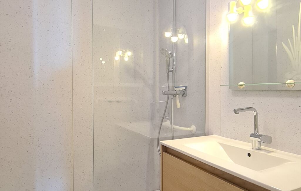 - Sur le point technique, il est équipé d'un chauffage au sol (collectif), de menuiseries PVC/aluminium avec double vitrage et volets roulants électriques avec télécommande générale. La salle d'eau principale a été refaite ainsi que le tableau électrique.