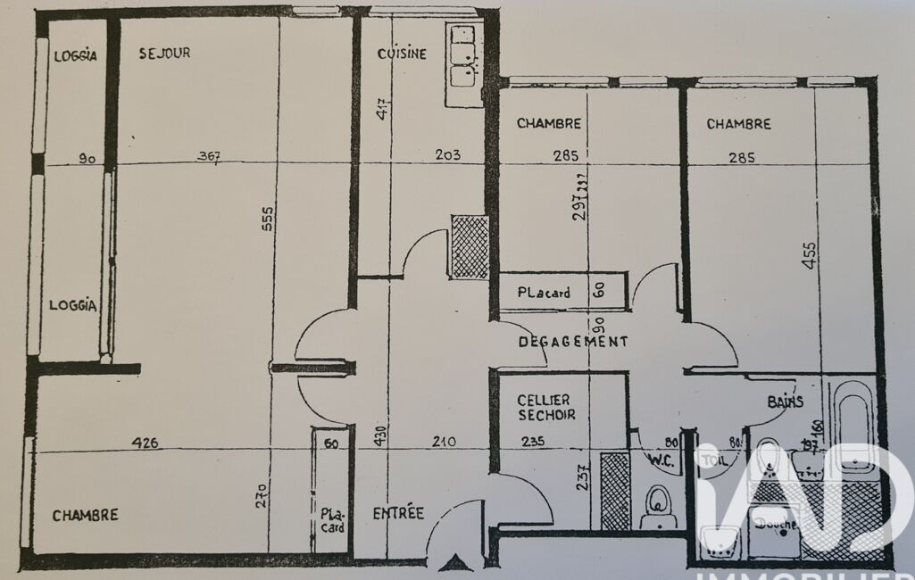 - L'appartement se compose d'une belle et grande entrée, débarras, cuisine aménagée, séjour de 20 m² environ lumineux et donnant sur la loggia, salon/chambre de 12 m² avec placard puis 2 autres chambres de 9 m² et 13 m², dégagement avec placards, deux salles d'eau et toilette séparée.