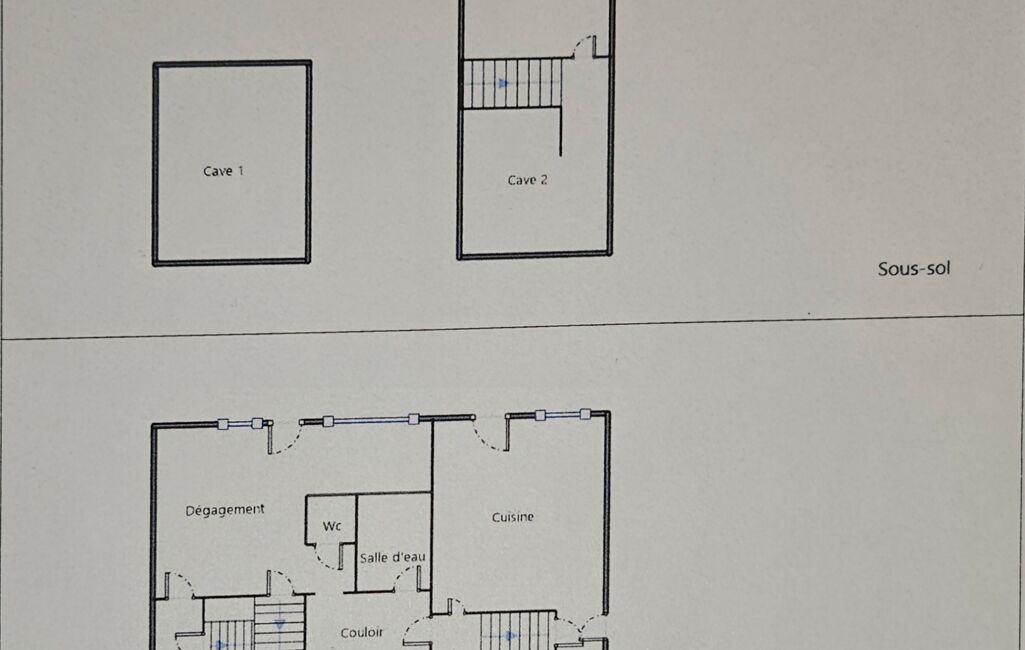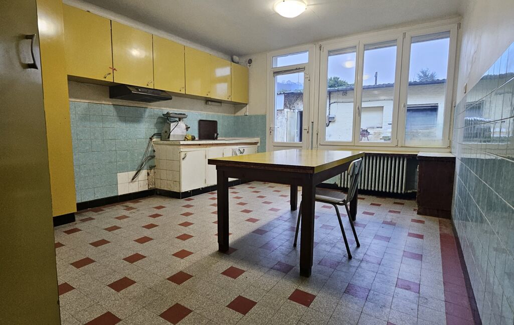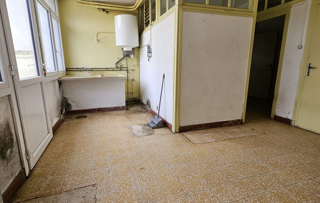 cuisine avec accès terrasse , salon séjour, salle d'eau, wc, buanderie, ancien magasin qui peut permettre d'agrandir le salon séjour