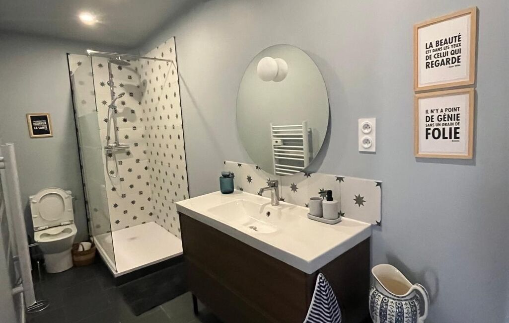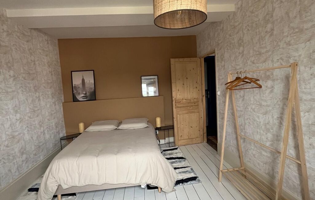 Cette maison se compose : REZ-DE-CHAUSSÉE : Entrée cuisine (20 m2), buanderie wc (3 m2) salon / salle à manger avec poele (34 m2). 1er ÉTAGE : Palier couloir (3,5 m2) 3 chambres (14 / 18,7 / 12,5 m2) et salle de douche neuve avec wc (5,6 m2). Les combles sont aménageable. Fenêtres double vitrage bois / porte double vitrage PVC, chauffage électrique, Poele a bois dans le salon. Assainissement collectif, village avec la fibre optique. Maison refaite a neuf au gout du jour.