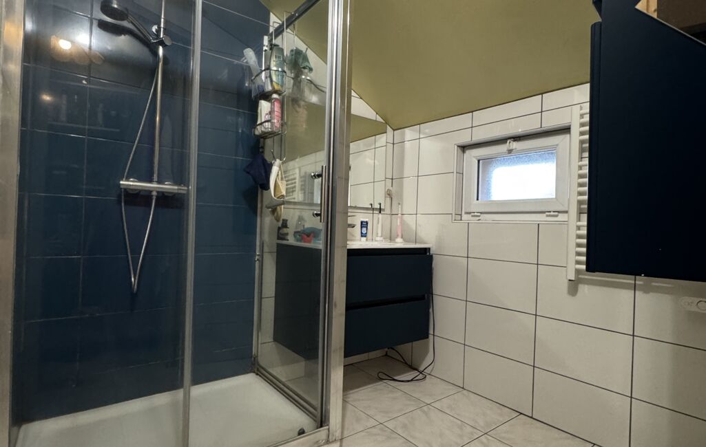 une salle d'eau moderne, un Wc séparé, une buanderie. À l'étage, le pallier dessert deux belles chambres de 12 et 13m², offrant chacune une ambiance cosy, idéales pour accueillir une famille ou recevoir des invités.