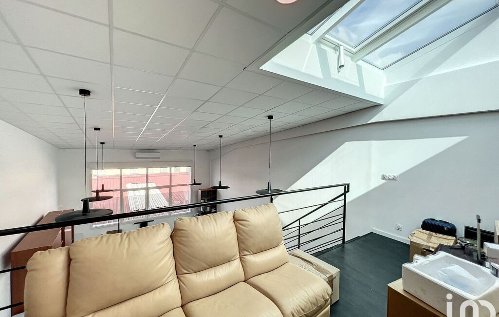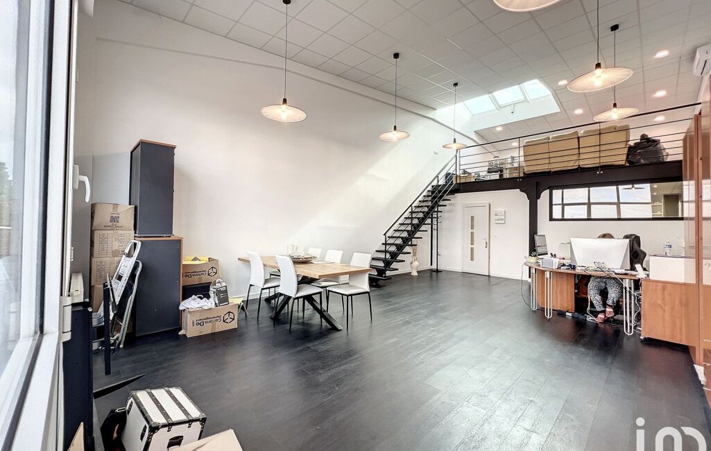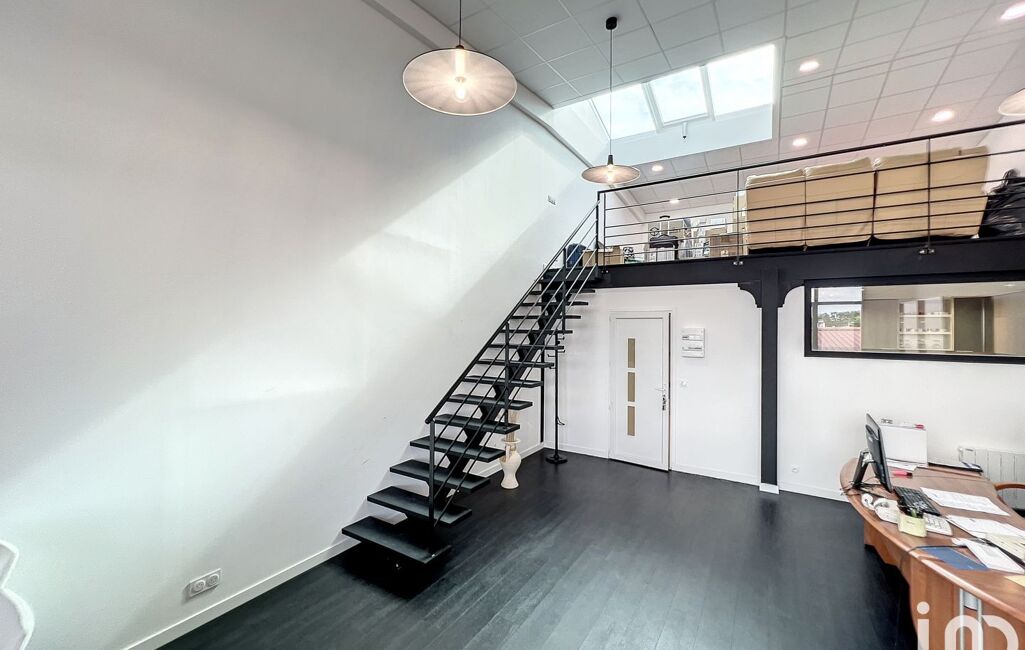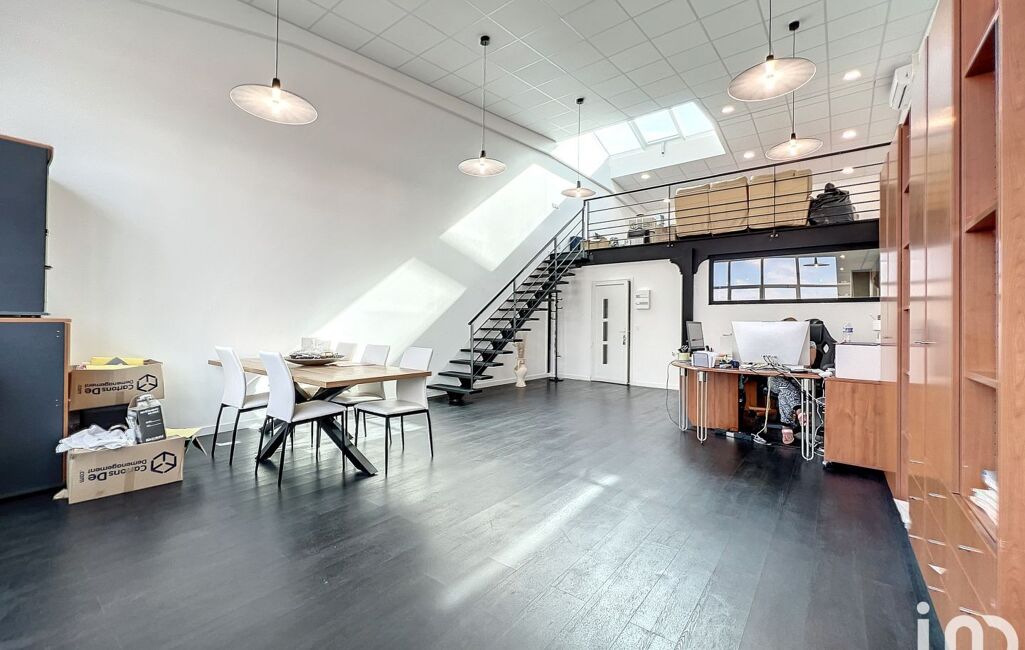 Ce bureau-loft en duplex propose une configuration unique comprenant une cuisine indépendante, une vaste entrée, une zone de travail de plus de 50m² environ, deux sanitaires indépendants, ainsi qu'une grande mezzanine lumineuse à l'étage.