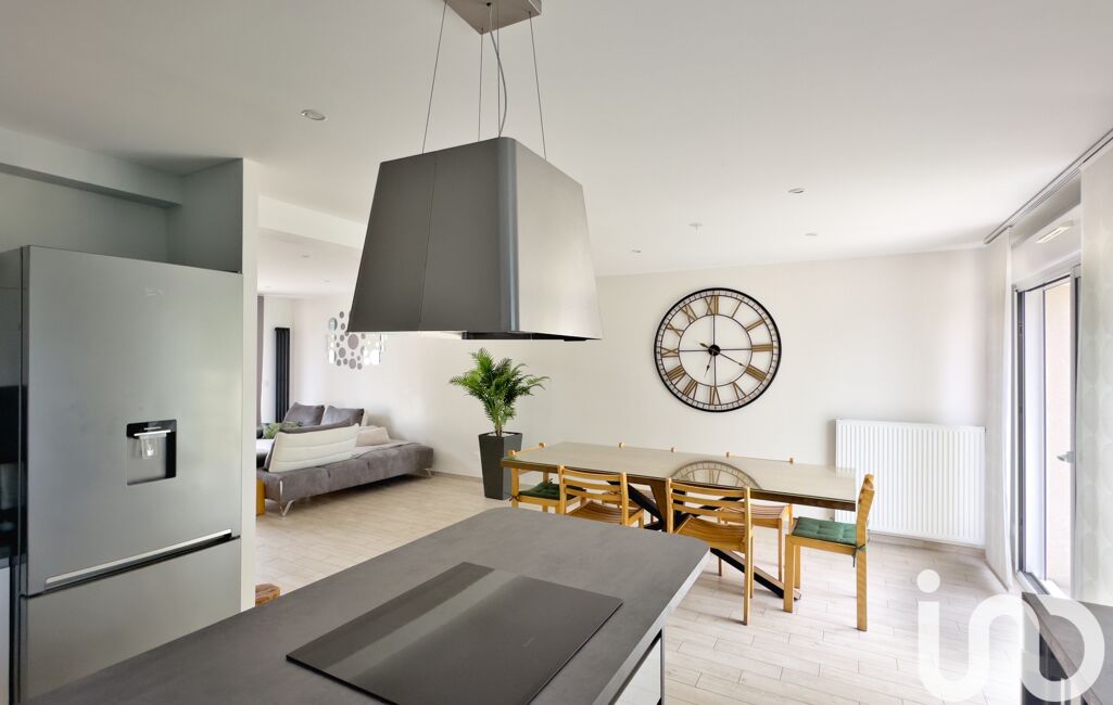 La maison développe 100 m² habitables, complétés par un garage fermé de 20 m², répartis sur deux niveaux.