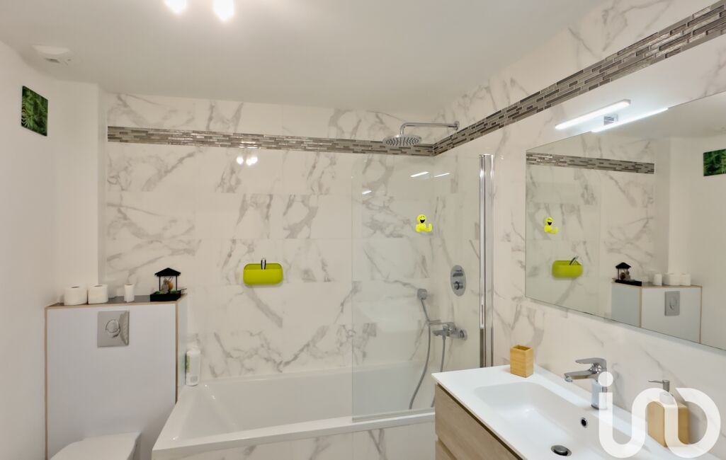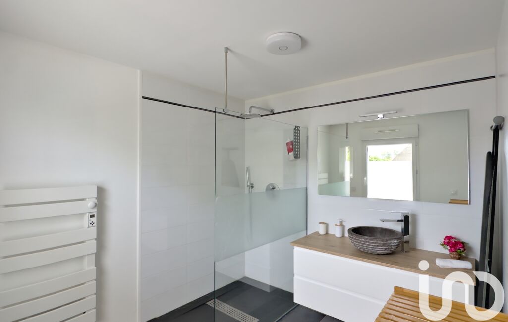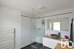 À l’étage : deux chambres, une salle de bain avec toilettes et baignoire, ainsi qu’une suite parentale avec chambre et salle d’eau privative.