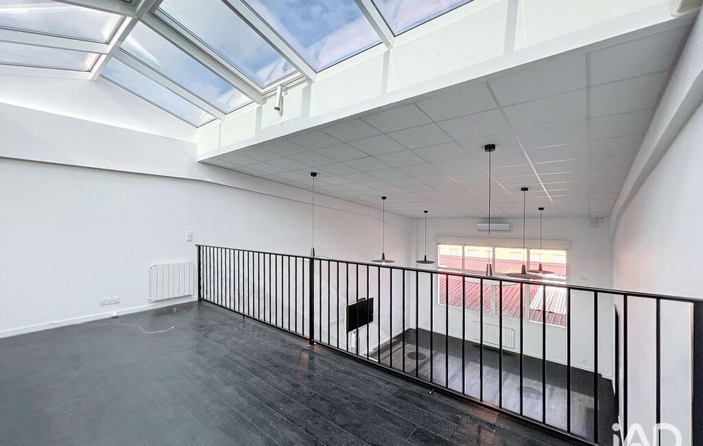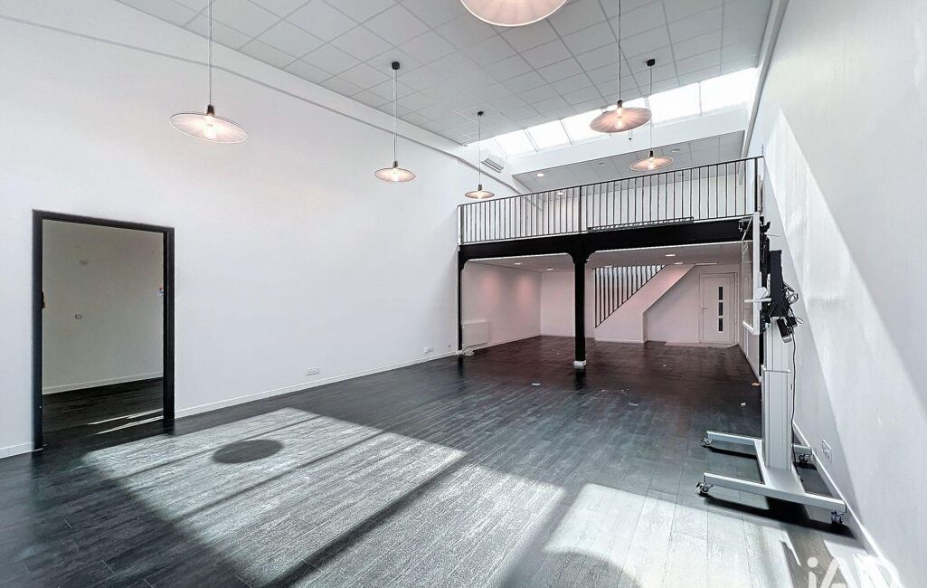 Ce bureau en duplex propose une configuration unique comprenant une zone de travail de plus de 70m² environ, ainsi qu'une grande mezzanine lumineuse à l'étage de 40m2 environ.