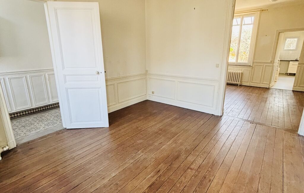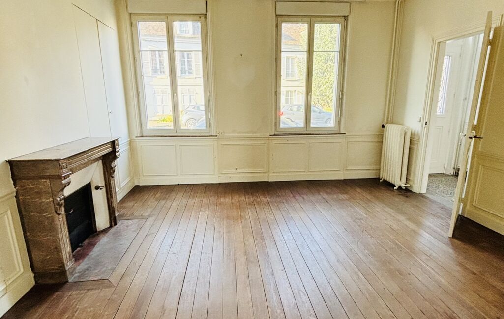 iad France - Sylvie Menu vous propose: Située dans le centre ville de Compiègne, cette maison de ville de caractère est idéale pour une famille. Dès l'entrée, un couloir traversant avec accès direct au jardin dessert un salon (18,98) et une salle à manger (15,39) prolongée par une petite cuisine ouverte sur l'extérieur.