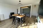 La pièce de vie lumineuse dispose d’une entrée avec placard et d’une cuisine neuve, entièrement aménagée et équipée (plaque de cuisson, hotte, four, réfrigérateur-congélateur, lave-vaisselle et lave-linge).