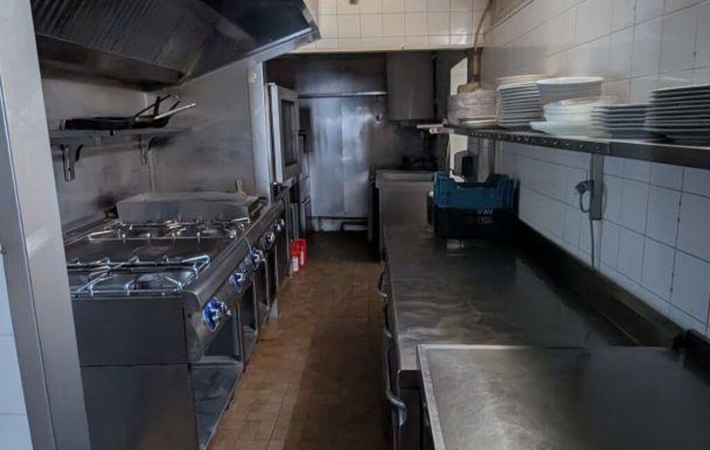 - une cuisine toute équipée avec du matériel de qualité (HOBART) : zone préparation froide, cuisson (feux, friteuse, grill, four), - une plonge avec lave-vaisselle,