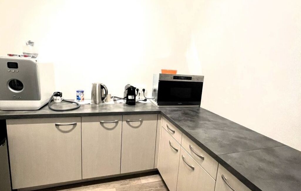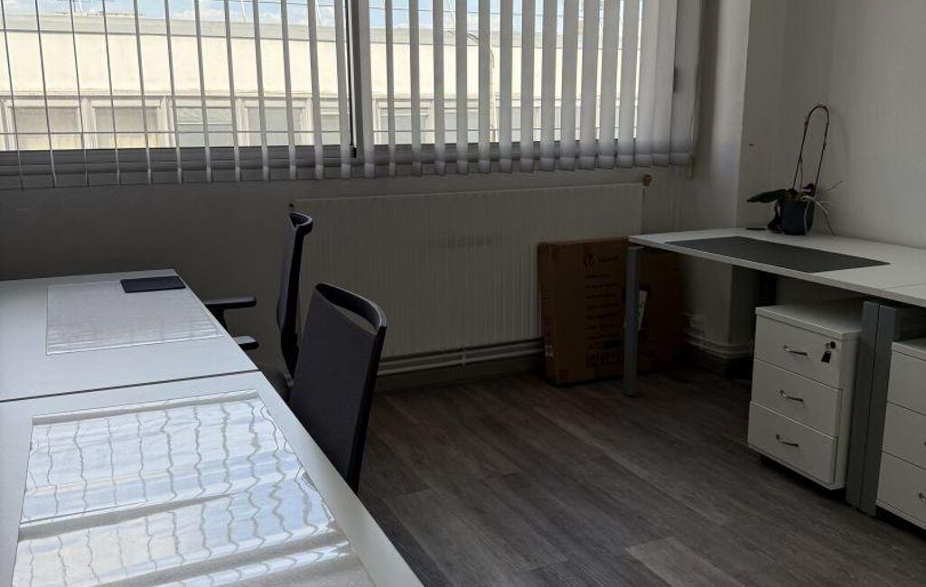 80m2 environ- 4 pièces : 3 BUREAUX + 1 ESPACE OPEN SPACE + CUISINE + WC avec lave main.