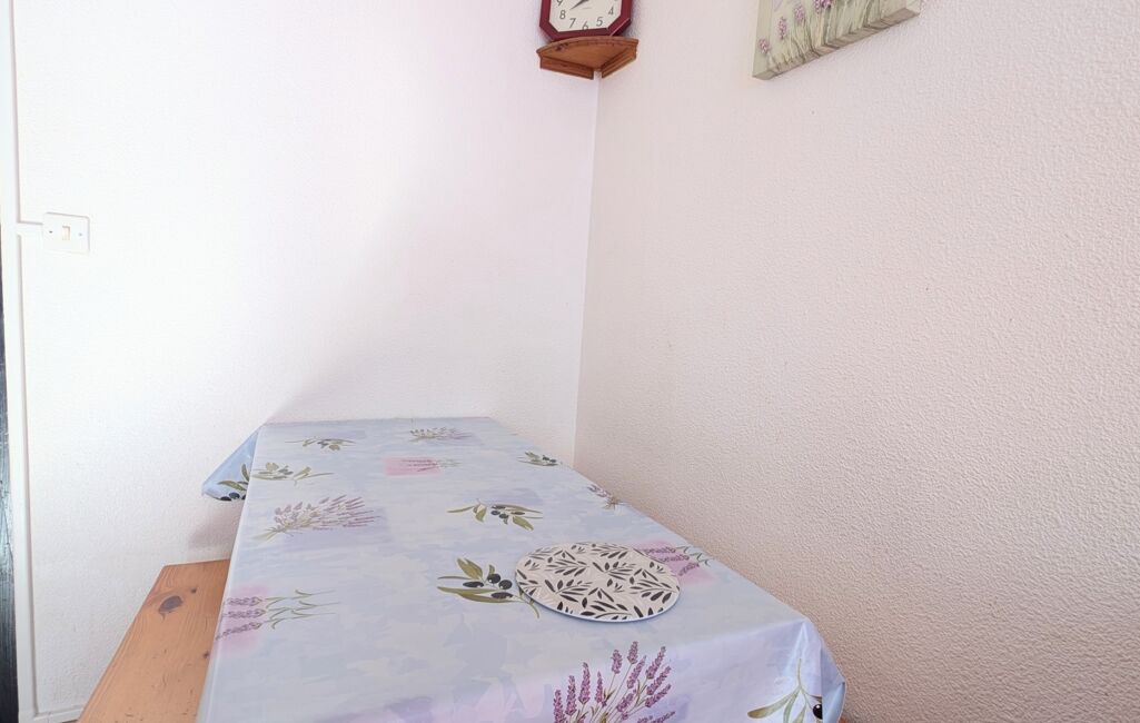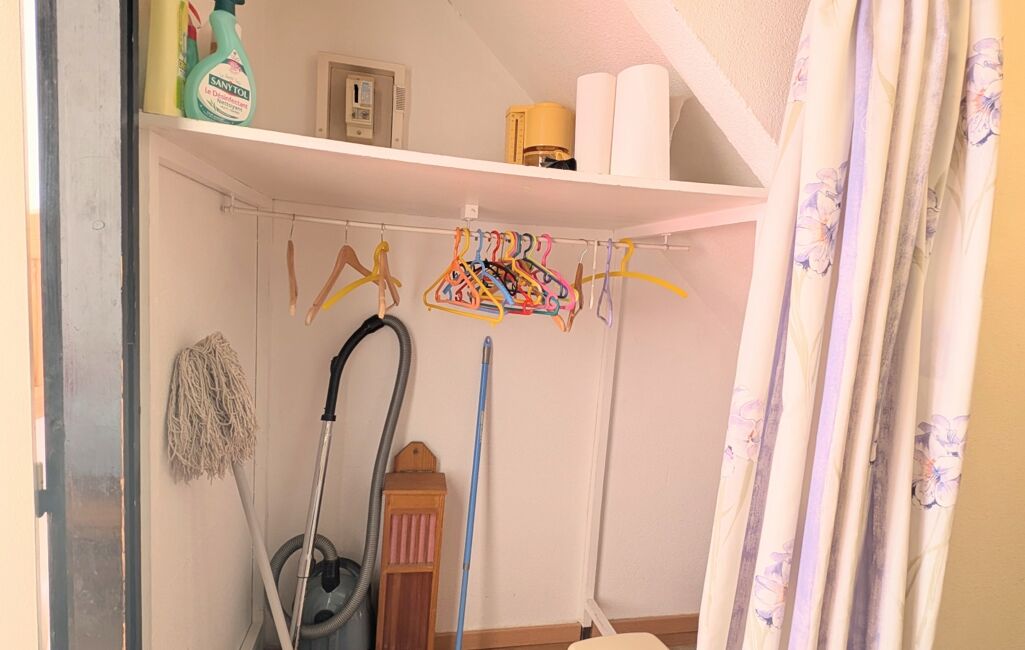 Vous trouverez également une salle de bain avec WC, un grand placard. Le studio dispose de quatre couchages, ce qui le rend particulièrement adapté à la location saisonnière ou aux séjours en famille.