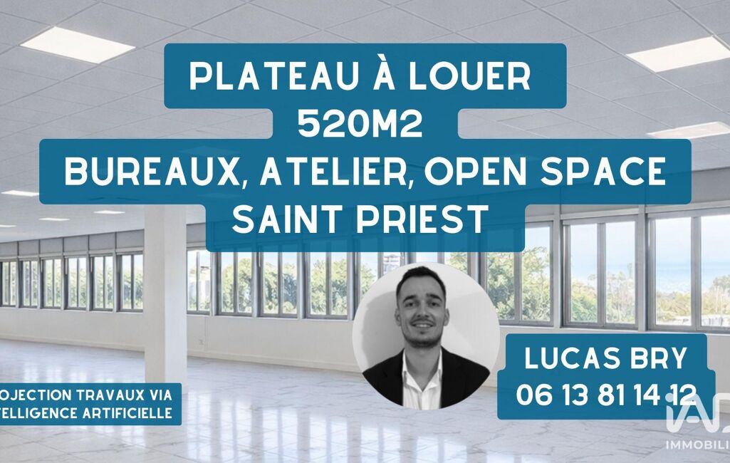 iad France - Lucas Bry (06 13 81 14 12) vous propose : À louer - Plateau de bureaux, atelier, Open Space, de 520m2 environ - Saint Priest