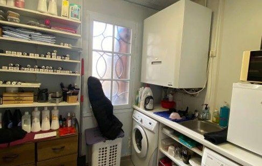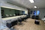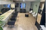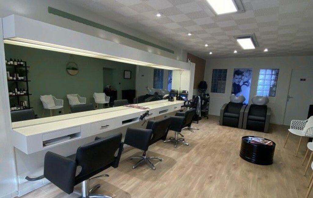 Le local dispose de 2 bacs à shampoing, 4 postes de travail dont un pour enfant, 3 fauteuils d'attente.