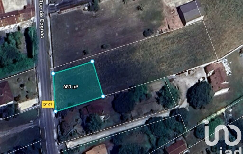 iad France - Nelly Brunet vous propose: EN EXCLUSIVITÉ !! Situé à ARS, village agréable et calme, proche Cognac 10mn, vous y trouverez : cabinet médical, pharmacie, Epicerie/Tabac, poste, école primaire, différentes associations sportives et culturelles, venez découvrir ce terrain à bâtir d'une superficie de 650 M² non viabilisé, plat, réseaux en limite de propriété, hors ABF. Bornage et Etude G1 en cours de réalisation.