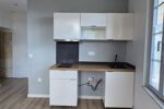 L'appartement est composé d'une pièce de vie lumineuse avec balcon et cuisine semi équipée, une salle d'eau moderne et une chambre calme donnant sur la cour intérieure.