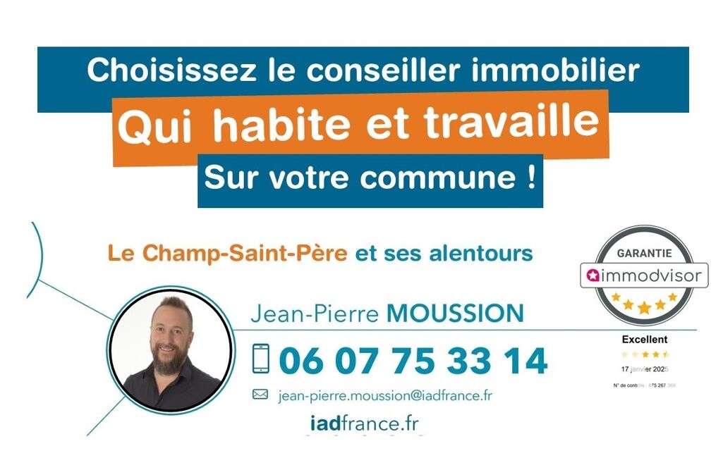 La présente annonce immobilière a été rédigée sous la responsabilité éditoriale de M Jean-Pierre Moussion mandataire indépendant en immobilier (sans détention de fonds), agent commercial de la SAS I@D France immatriculé au RSAC de La Roche-sur-Yon sous le numéro 902981695, titulaire de la carte de démarchage immobilier pour le compte de la société I@D France SAS.