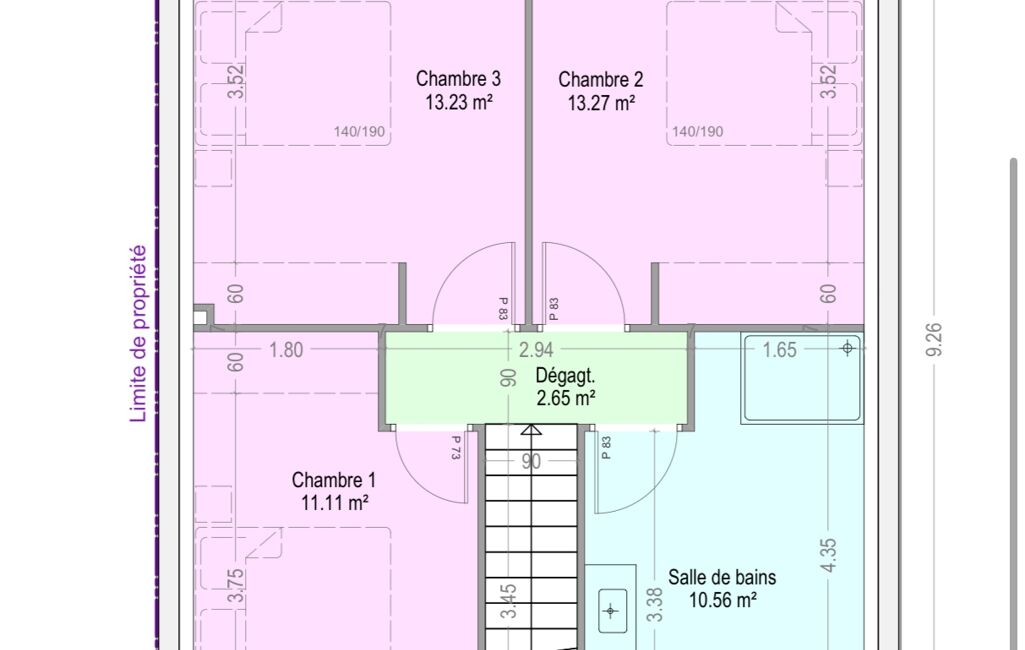 - Superficie terrain : 415 m²