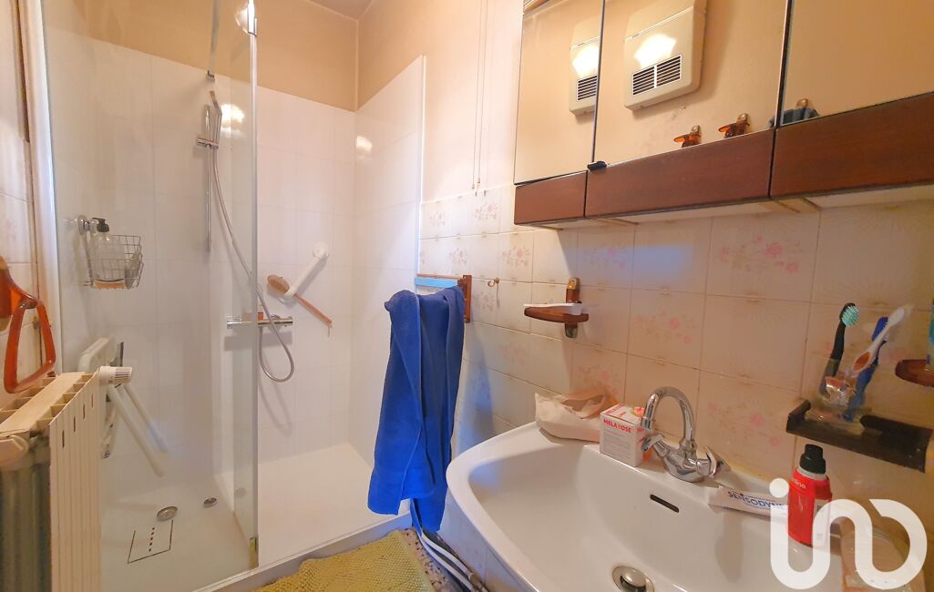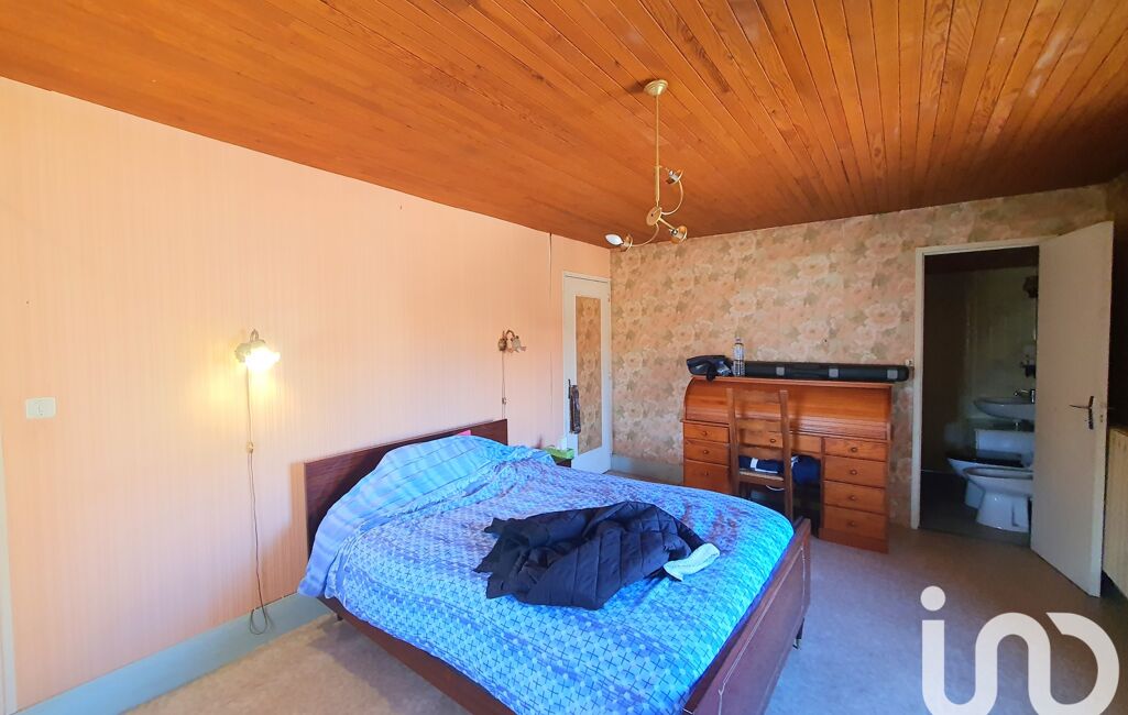 À l’étage : trois chambres de 19, 18 et 13 m². L’une des chambres est entièrement à réhabiliter, avec réfection du plafond à prévoir. Des toilettes avec sanibroyeur sont également présents à l’étage.