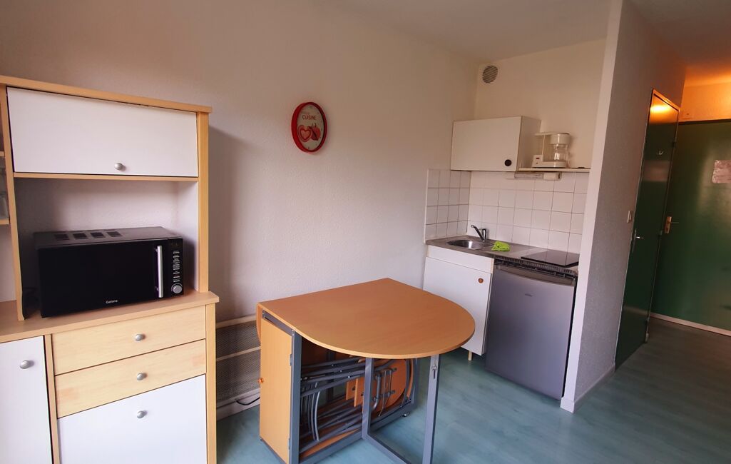 Ce studio dispose d'une pièce principale avec une grande fenêtre offrant une vue dégagée et une belle luminosité naturelle tout au long de la journée. La cuisine est équipée de manière pratique pour répondre à tous vos besoins culinaires. La salle d' eau avec WC est moderne et fonctionnelle, offrant tout le confort nécessaire.