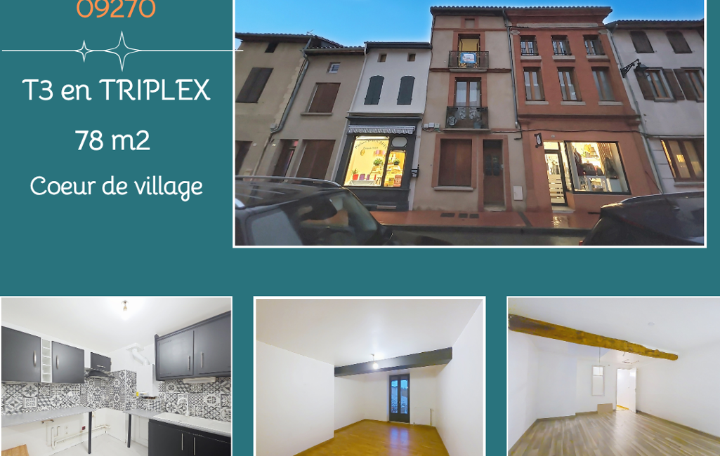 Ce triplex unique, d'une surface de 78,42 m² habitable et 101 m2 de surface au sol, offre un cadre de vie chaleureux et atypique au sein du charmant village de Mazères. Situé au 2ème étage d'un immeuble de 1950 , cet appartement jouit d'une disposition en palier qui lui confère un cachet particulier et une ambiance cosy.