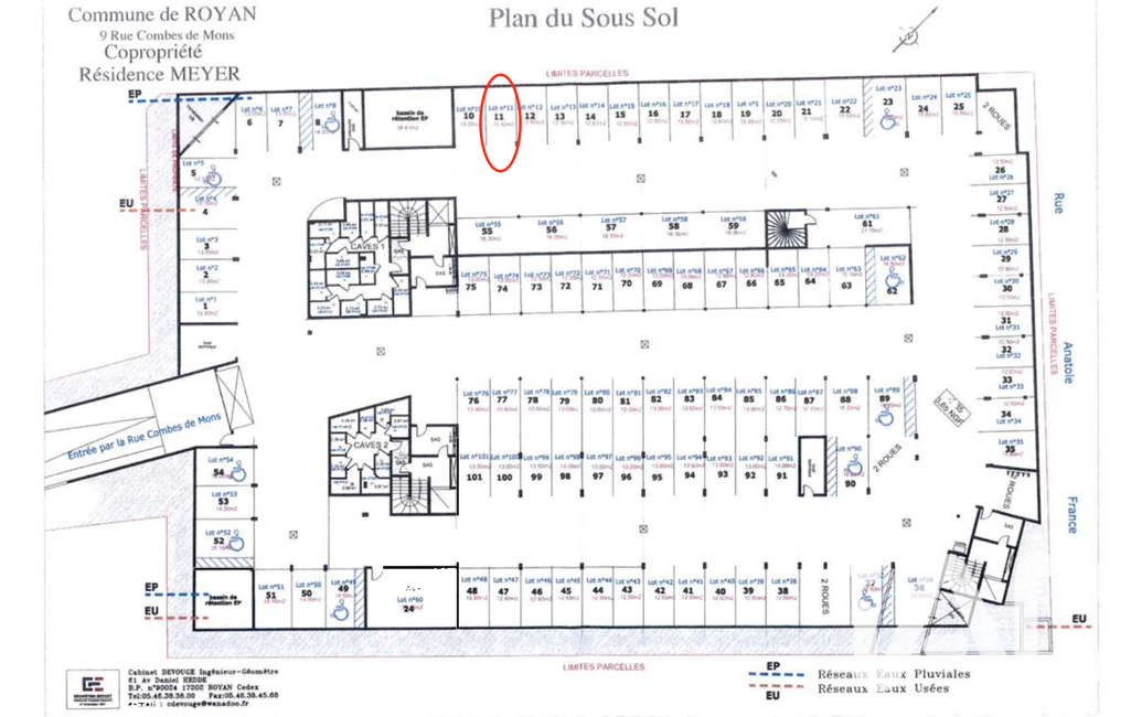 Au sein de la Résidence Meyer, située 9 rue Combes de Mons à Royan, place de parking en sous-sol avec système de vidéosurveillance.