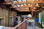 L’arrière du bâtiment est constitué de plusieurs terrassements et l'on retrouve quelques escaliers/accès vers l'habitation. Le tout est couvert par une ossature bois supportant des plaques translucides.