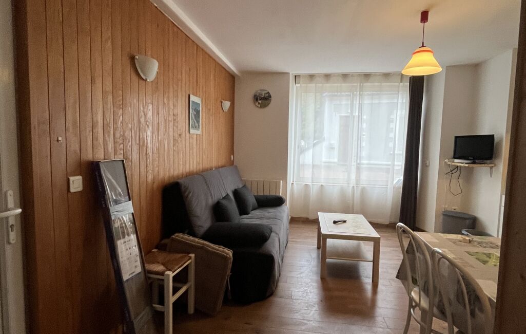 iad France - Marine Gimonet vous propose: Appartement 2 pièces Mont-Dore - Idéal Investissement locatif ou Pied-à-terre, au rez de chaussée d'une résidence située en centre ville, à 5 minutes à pied des Thermes du Mont Dore et 3 minutes de la navette gratuite pour les pistes.