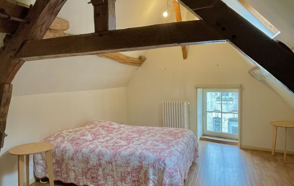 Au second palier : une belle pièce en sous-pente avec poutres, partie grenier
