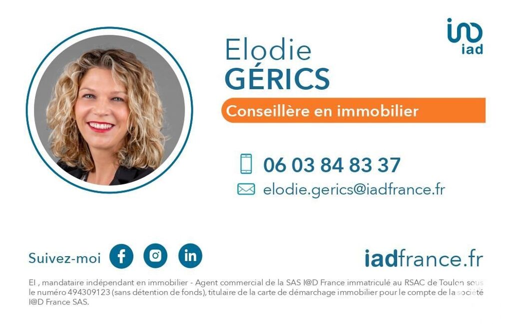 Information d'affichage énergétique sur le bien associé à cette annonce : DPE NS indice et GES NS indice .La présente annonce immobilière a été rédigée sous la responsabilité éditoriale de Mlle Elodie Gérics (ID 42576), Agent Commercial mandataire en immobilier immatriculé au Registre Spécial des Agents Commerciaux (RSAC) du Tribunal de Commerce de TOULON sous le numéro 494309123