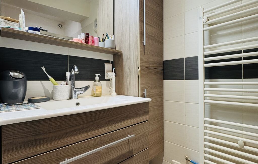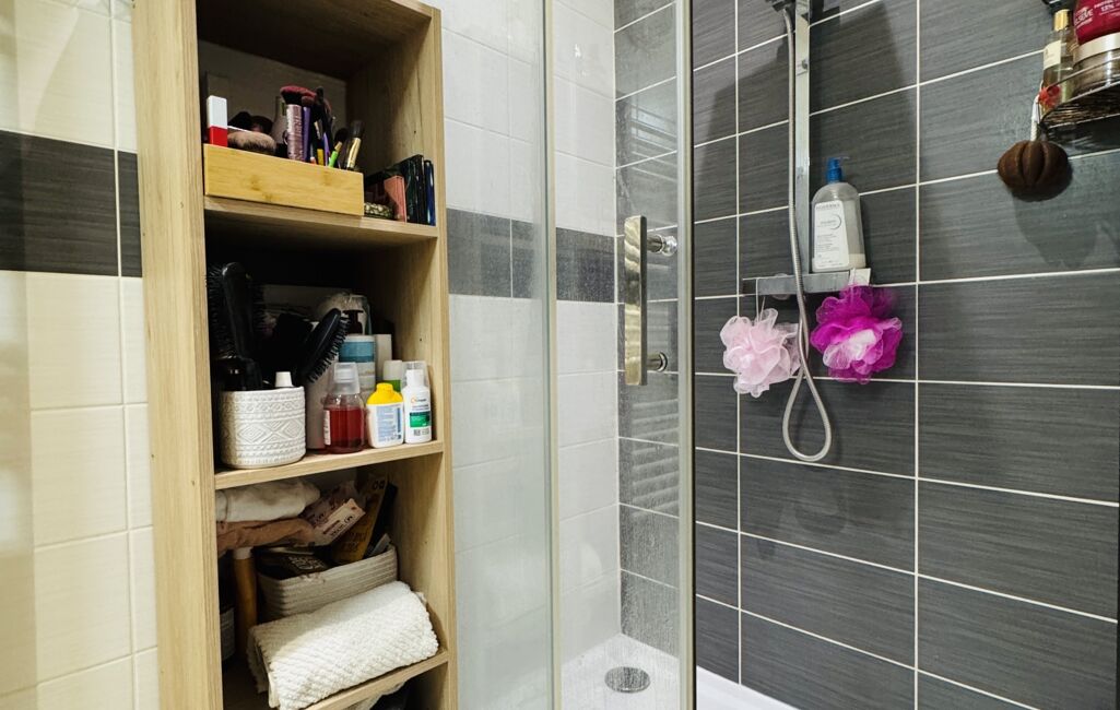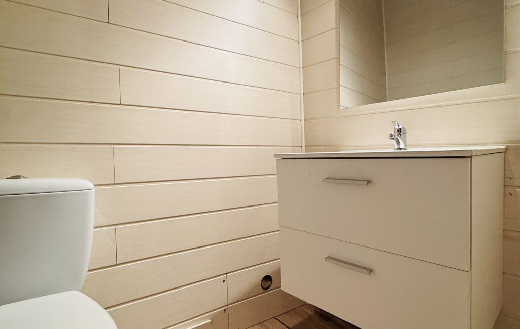 Au rez-de-chaussée vous trouverez également un bureau avec de nombreux rangements, un petit cellier, un WC ainsi que la salle d'eau.