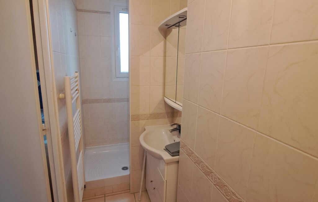 Cet appartement se compose d'une entrée, une belle cuisine aménagée, une chambre avec différents placards et une salle d'eau avec toilette. Une cave en sous-sol offrant ainsi un espace supplémentaire pour du rangement.