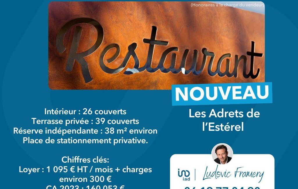 iad France - Ludovic Framery (06 19 77 04 90) vous propose : À VENDRE EN EXCLUSIVITE – Fonds de commerce restaurant / pizzeria / salon de thé / glacier – Licence IV – Les Adrets de l’Estérel (83)