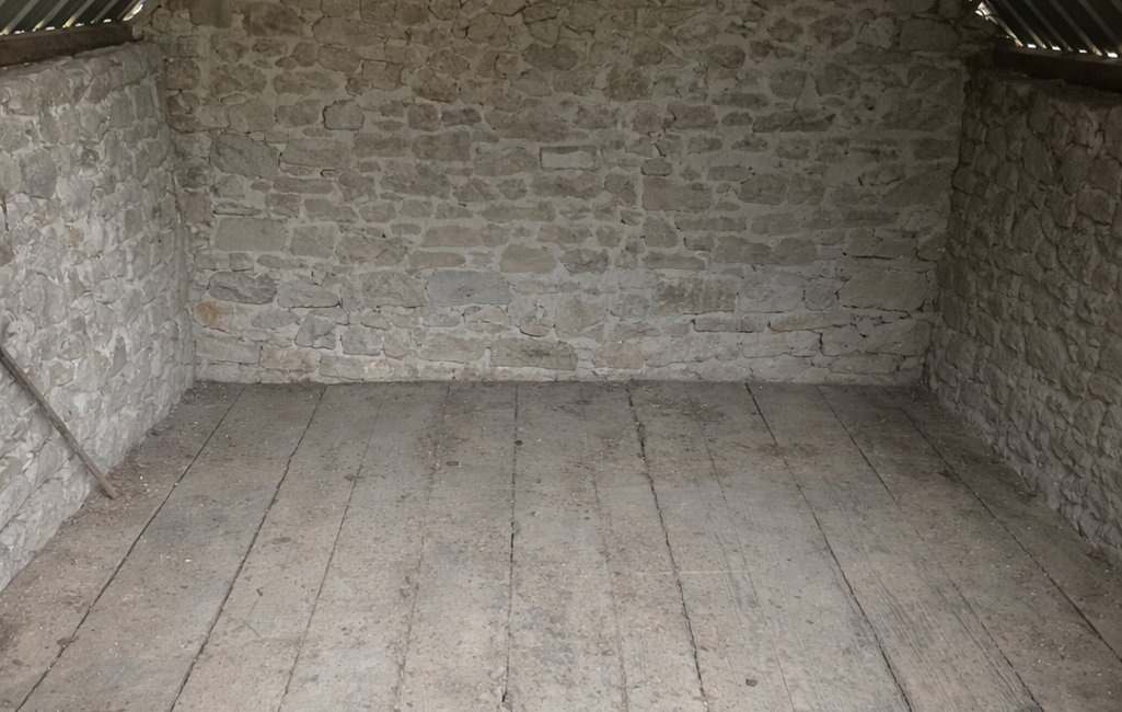 Édifié en pierre, le moulin développe une surface d’environ 22 m² et repose sur une structure saine, parfaitement conservée.