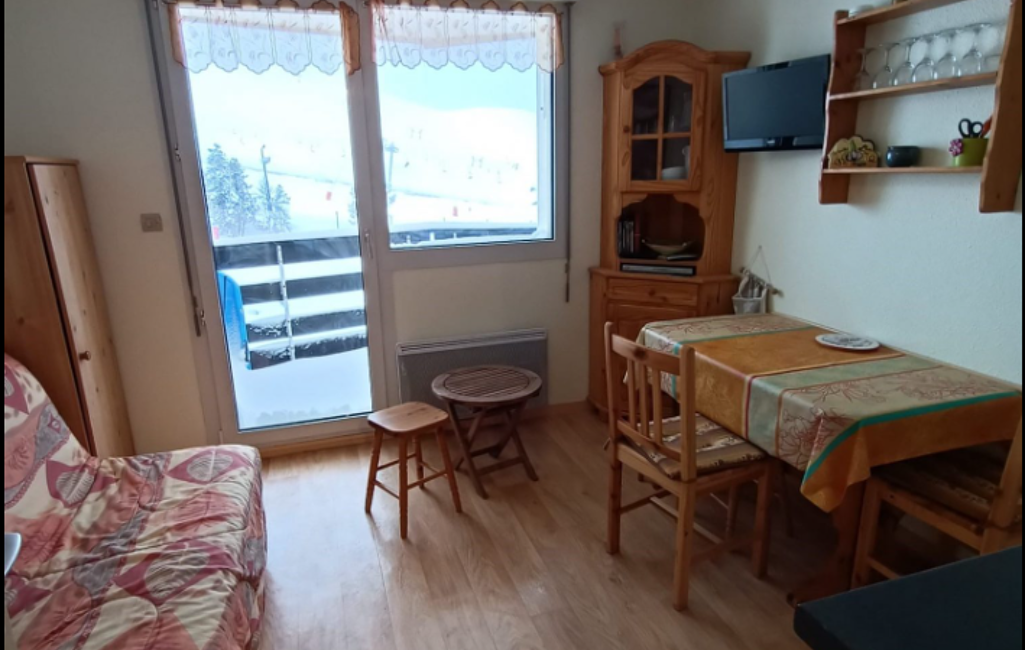 Il se trouve dans la résidence plein soleil à la Pierre saint Martin avec parking et ascenseur face aux pistes de ski et se compose, d' un couloir avec lits superposés, d' une salle d' eau avec WC, d' une belle pièce à vivre donnant sur un balcon de 4 m2 environ exposé sud et d' un casier à ski.
